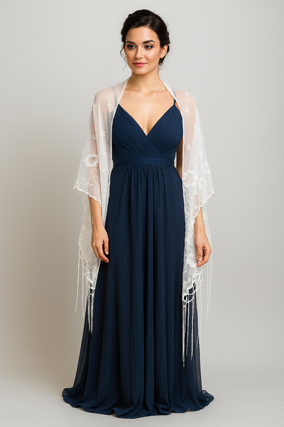 💃 Estilo: Versátil, se puede usar como chal, bufanda o accesorio decorativo para vestidos de fiesta y trajes.